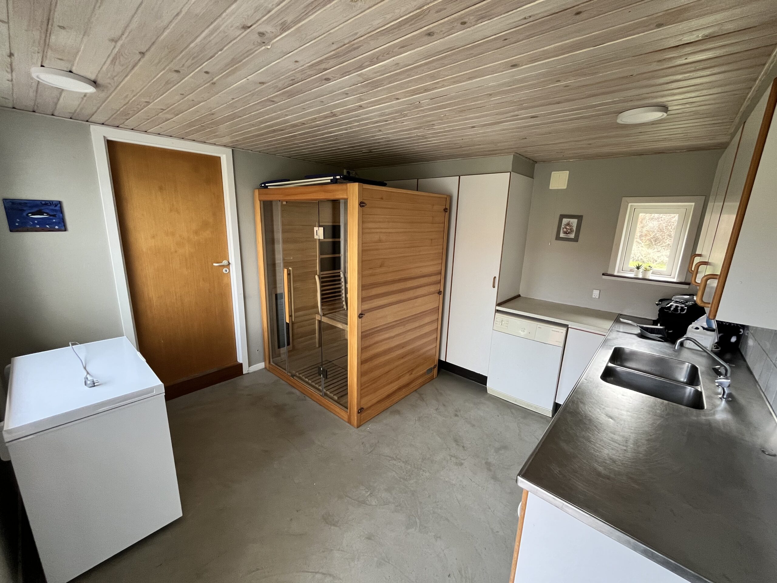 De store stuer inviterer til lange måltider, gode samtaler og hyggelige aftener ved brændeovnen. Udendørs kan aftensmaden tilberedes på gasgrillen, mens solens sidste stråler falder over Lillebælt. Efter en dag i naturen giver husets egen infrarødsauna mulighed for afslapning – perfekt efter et frisk bad i havet eller en aktiv dag ved kysten.